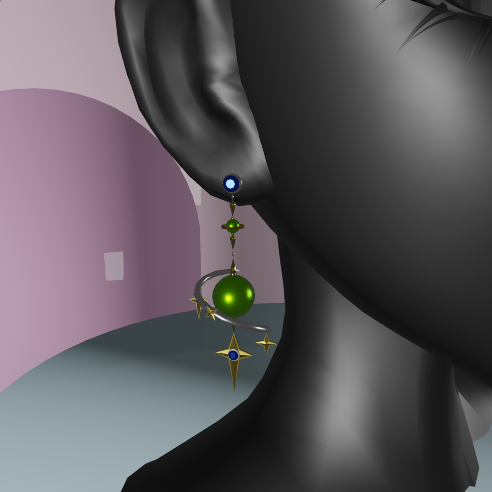 Set of earrings made for the Azura head base (Yes, it comes with two earrings fitted to the head in the image there is only one for up close details.)